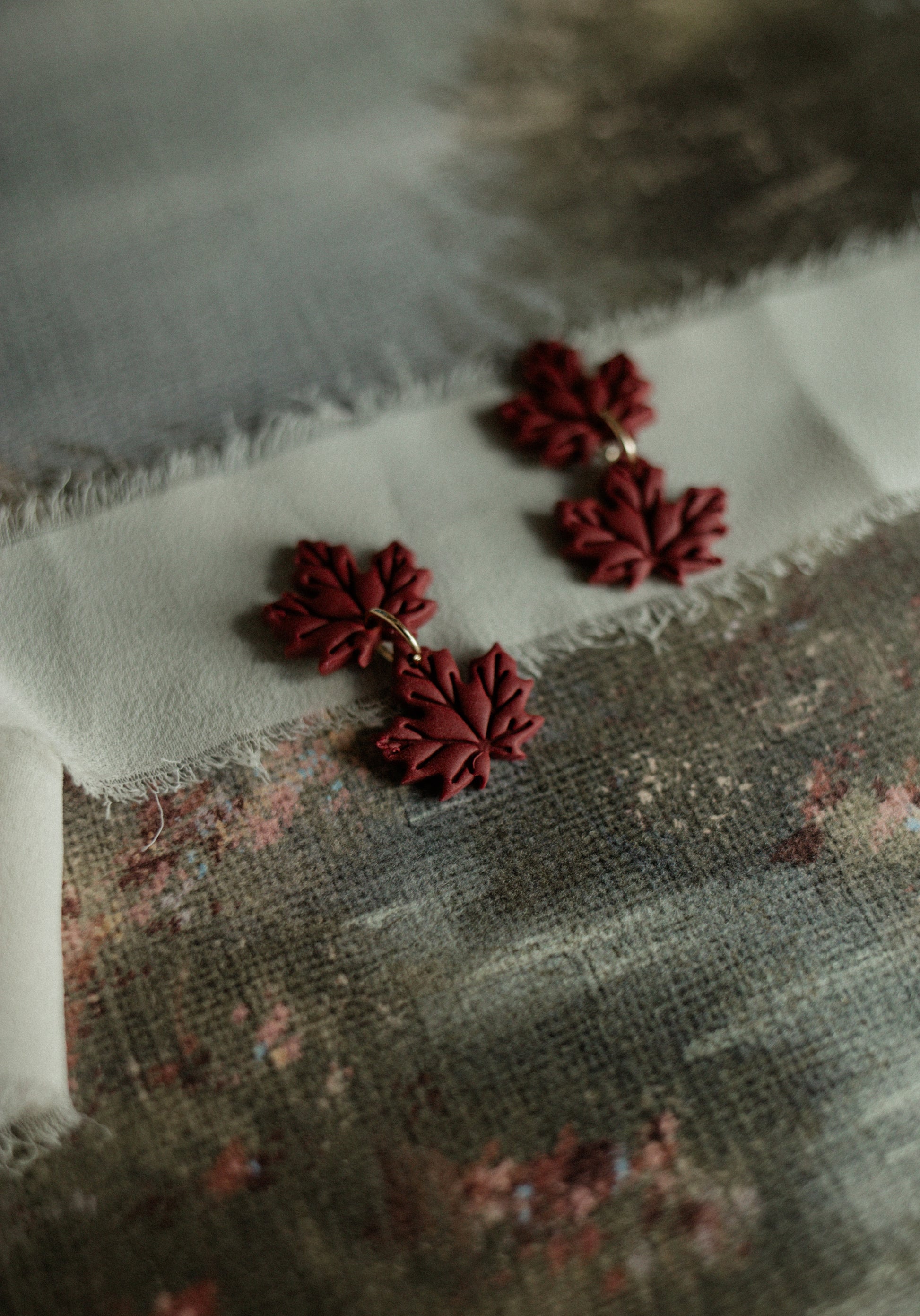These maple leaf studs are a celebration of life’s sweetest seasons. Hand sculpted in a warm rust red, they capture the playful charm of autumn leaves while carrying a romantic nod to treasured memories.