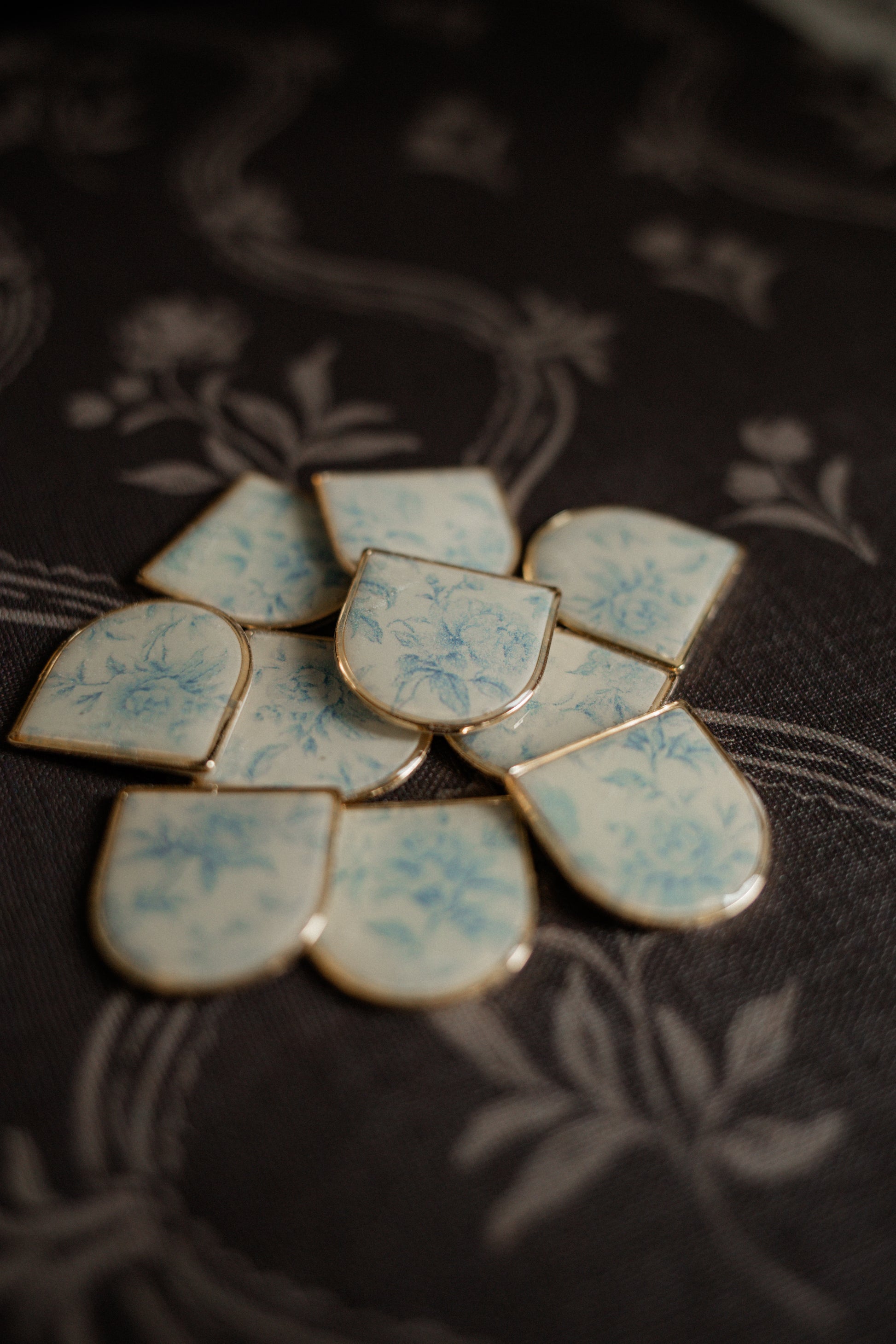 Inspired by your favorite afternoon teacup, this charming piece features delicate blue florals, a luminous opal accent, and a gold-toned rim. A graceful nod to the art of slowing down, it captures the quiet beauty of teatime in every detail.